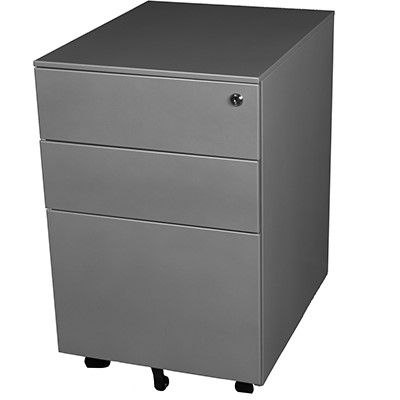 STEELCO TRIMLINE MOBILE PEDESTAL 3-DRAWER LOCKABLE 390 X 500 X 615MM SILVER GREY