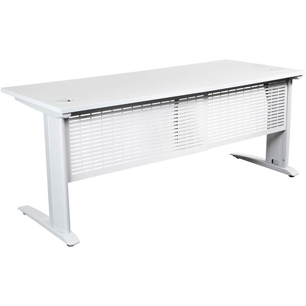 A versatile steel frame desk that is made to create a modern and open look in any office environment - Complete with a 25mm white finish top and is suitable for any contemporary workplace and layout