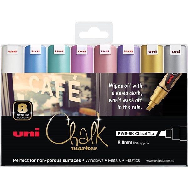 UNI-BALL CHALK MARKER CHISEL TIP 8MM ASSORTED METALLIC PACK 8