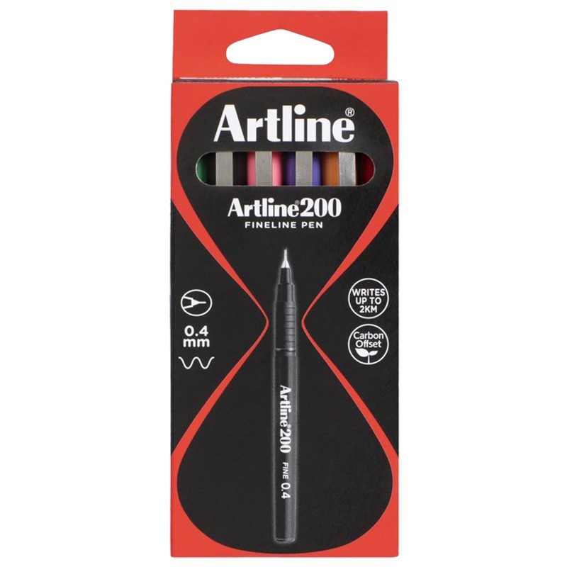 ARTLINE 200 FINELINER PEN 0.4MM 8 COLOUR ASSORTED BOX 12