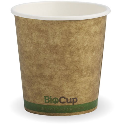 Paper BioCups are producing from sustainably sourced paper from managed plantations with a bioplastic lining made from plants not oil - Suitable lids include BCL-4, BCL-4W and BCL-4B