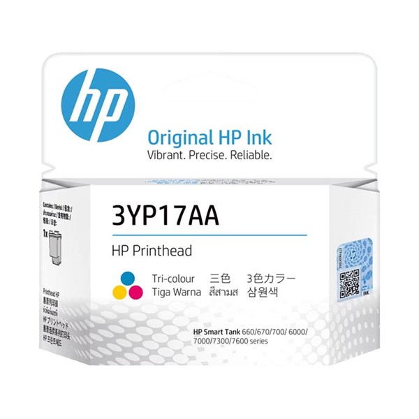 The HP 3YP17AA is an original HP tri-color inkjet printhead (Cyan, Magenta, Yellow) designed for HP's Smart Tank series - Works with your HP ink tank system and Original HP inks to print thousands of pages