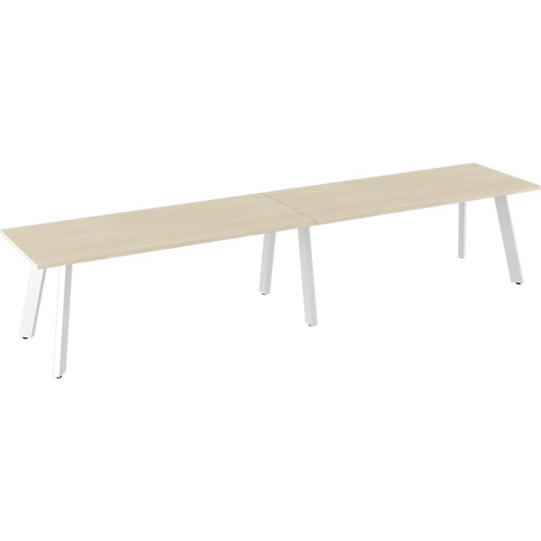 OLG FLARE TABLE 6 LEG WHITE FRAME 3600MM X 1200MM NORDIC MAPLE 2-PIECE TOP