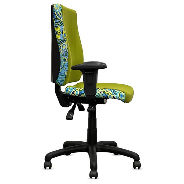 - A unique commercial fabrics designed by STEPHEN JUPURRURLA NELSON (Indigenous Artist) combined with K2 Fabric to upholster the chair