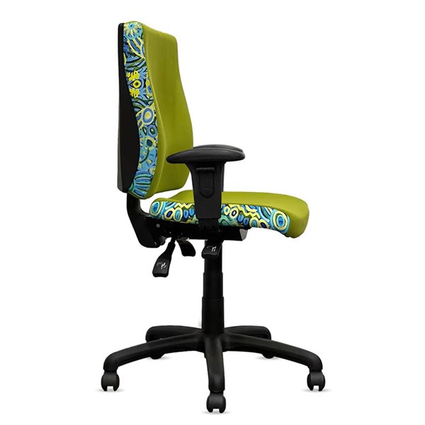 - A unique commercial fabrics designed by STEPHEN JUPURRURLA NELSON (Indigenous Artist) combined with K2 Fabric to upholster the chair