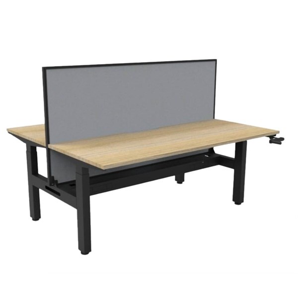 RAPIDLINE BOOST CRANK BACK TO BACK WORKSTATION WITH CABLE TRAY AND SCREEN 1200 X 1500 X 705MM NATURAL OAK TOP AND BLACK SATIN FRAME