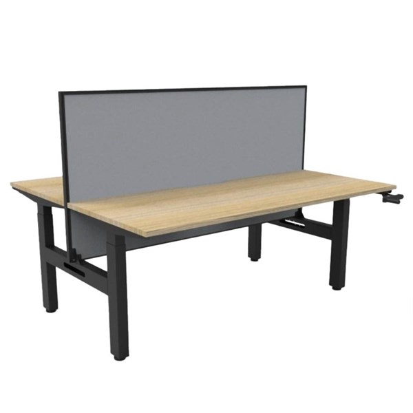 RAPIDLINE BOOST CRANK BACK TO BACK WORKSTATION WITH SCREEN 1800 X 1500 X 705MM NATURAL OAK TOP AND BLACK SATIN FRAME