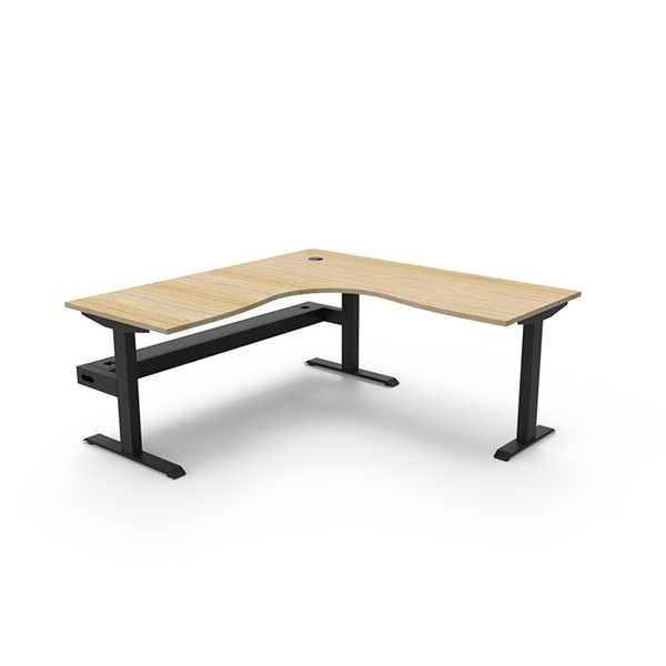 RAPIDLINE BOOST STATIC CORNER WORKSTATION WITH CABLE TRAY 1800 X 1800MM NATURAL OAK TOP / BLACK FRAME
