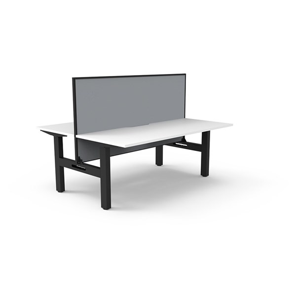 RAPIDLINE BOOST STATIC DOUBLE SIDED WORKSTATION WITH SCREEN 1500MM NATURAL WHITE TOP / BLACK FRAME / GREY SCREEN