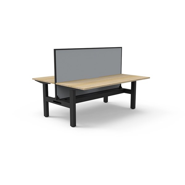 RAPIDLINE BOOST STATIC DOUBLE SIDED WORKSTATION WITH SCREEN AND CABLE TRAY 1800MM NATURAL OAK TOP / BLACK FRAME / GREY SCREEN