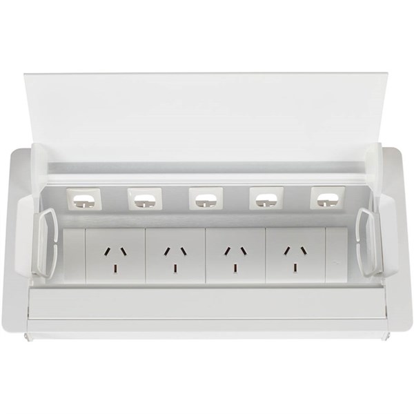RAPIDLINE TABLE SURFACE MOUNTED SERVICE BOX 4-GPO WHITE POWEDERCOAT