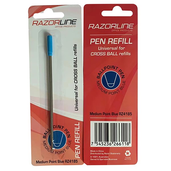 The Razorline refill RZ4180 provides a medium-point M/Blue ink line suitable for smooth, consistent everyday writing - It is engineered to be compatible with Cross-style pens, delivering reliable performance and steady ink flow