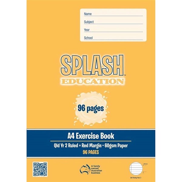 SPLASH EDUCATION EXERCISE BOOK QLD YEAR 2 RULED 60GSM 96 PAGES A4