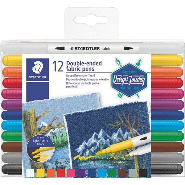 STAEDTLER 3190 DOUBLE-ENDED FABRIC PEN MARKERS ASSORTED BOX 12