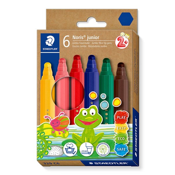 STAEDTLER NORIS 329 JUNIOR FIBRE TIP PENS ASSORTED BOX 6 HANGSELL