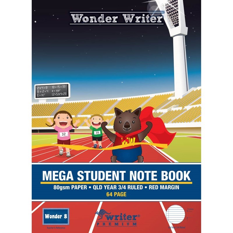 WONDER WRITER MEGA STUDENT NOTEBOOK QLD RULING YEAR 3/4 12MM 64 PAGE 330 X 240MM WONDER 8